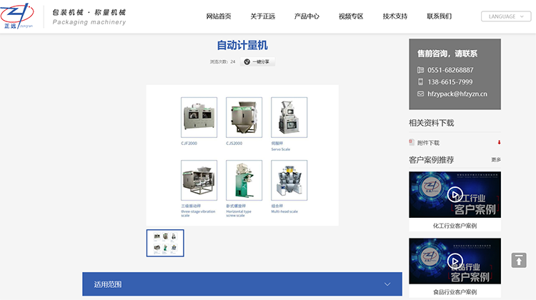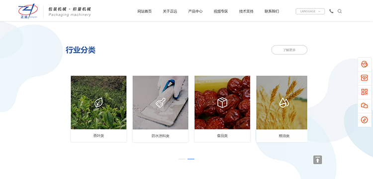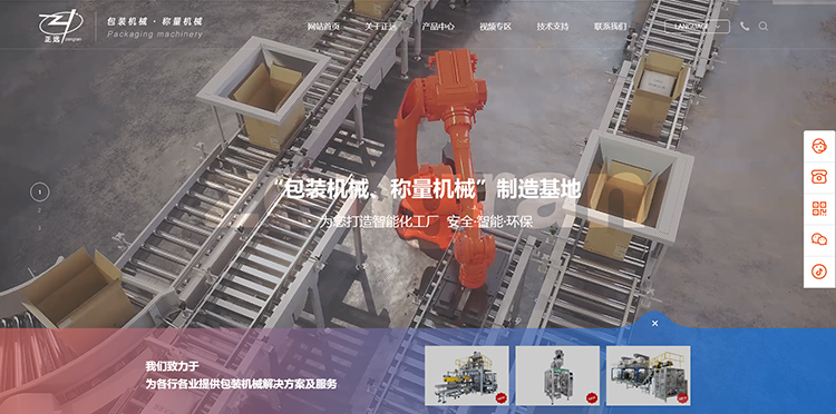 首頁高清視頻展現智能包裝設備工作流程,實現滿屏效果展示,更具視覺沖擊力,直觀感受包裝設備工作流程,宛如身臨其境。