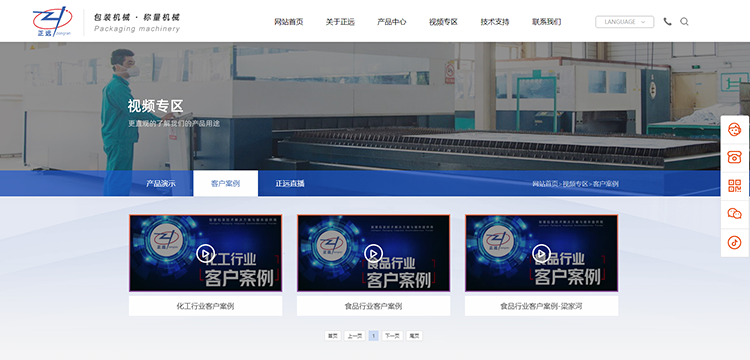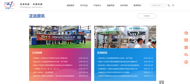 資訊中心更多內容展示,公司新聞、行業新聞、參展新聞清晰明了,一鍵搜索想要了解的資訊;視頻專區,帶你快速了解合肥正遠客戶現場包裝設備應用。