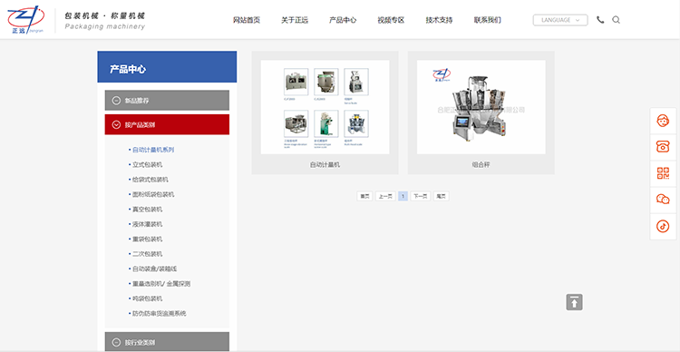 官網改版升級后,產品中心劃分清晰、簡單。舊版的產品中心,未對智能包裝設備進行劃分;新版的產品中心,以新品推薦、產品類別、行業類別對設備進行展示,便于企業快速找到匹配合適設備。