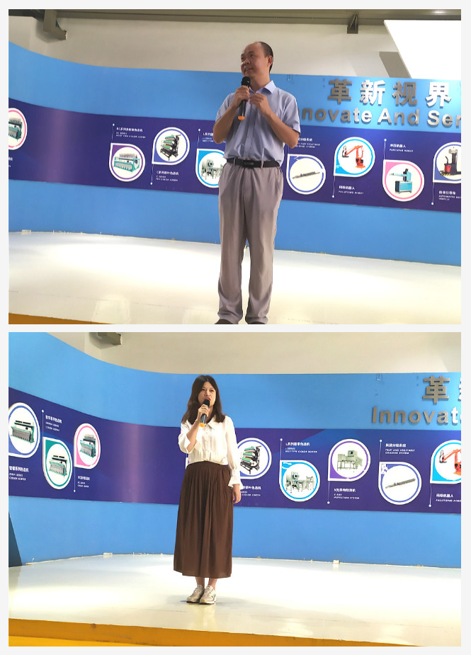 (合理化小組組長唐麟、副組長丁群燕發言)