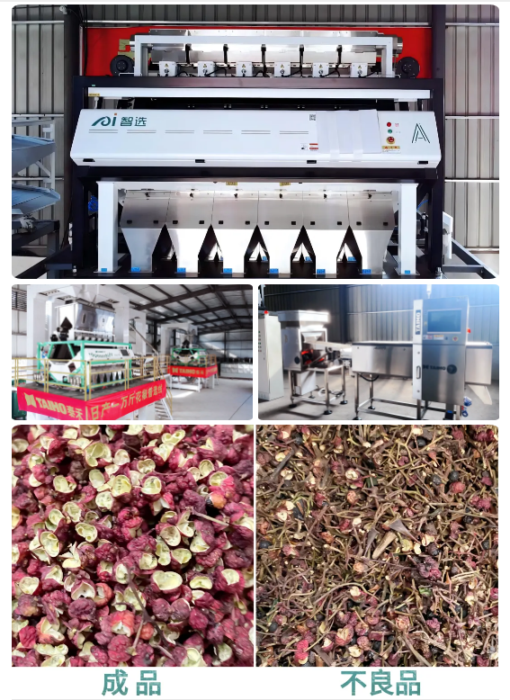 泰禾智能花椒分選全場景解決方案,高精度、大產量、一臺頂多臺!可以根據花椒的品種特征進行分級分選,并剔除花椒中的枝、桿、刺、籽、葉、老鼠屎、蝸牛殼等惡質,以獲得凈度高、果粒大、色澤鮮的高品質花椒產品,既保障花椒產品的品質,又滿足不同消費市場的客戶需求,增強了企業(yè)的市場競爭實力。