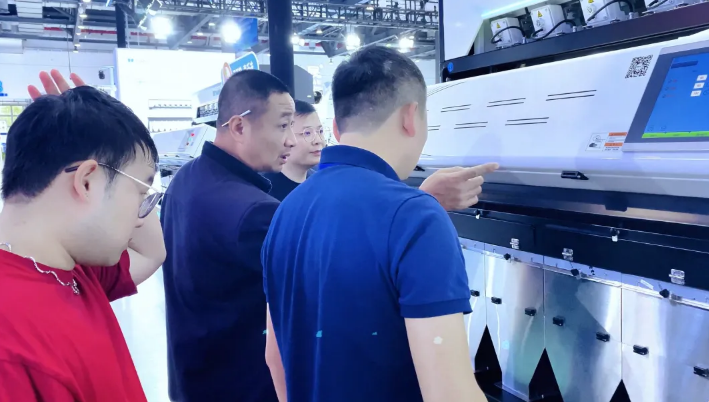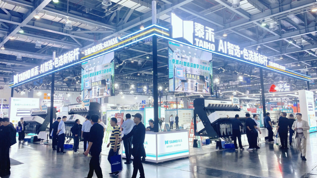 展會上,泰禾智能展示了天眼Pro系列色選機的多項創新功能,如高精度識別、定制化分選、智能化操作等,吸引了眾多客戶駐足觀看和交流。同時,還現場演示了色選機的操作流程,讓客戶親身體驗泰禾智能產品帶來的便捷和高效。