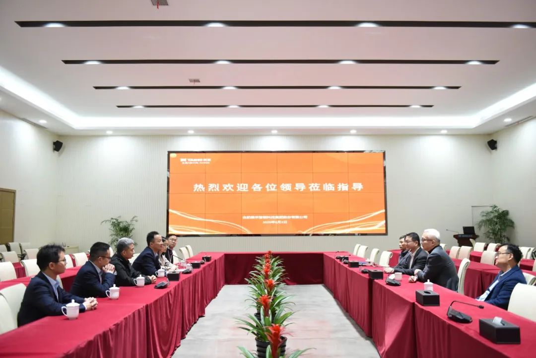 3月3日,合肥市商務局(市貿促會)商會處處長余洪滔與Duravant雋鋒集團食品分選加工事業部總裁Jack Lee、中國董事總經理呂勇及高級經理王青剛等高層管理人員造訪泰禾智能。總經理孫偉,副總經理石江濤,副總經理黃慧麗陪同調研。