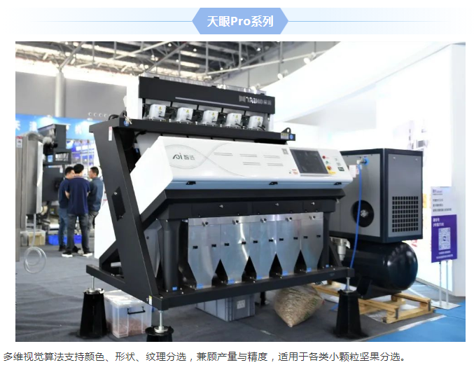 2025年4月17-19日,第十八屆中國堅果果干食品展覽會在合肥濱湖國際會展中心啟幕。作為智能分選裝備領軍企業,泰禾智能攜萬象Pro系列深度學習色選機及全場景解決方案重磅亮相,以“AI視覺+食品加工”技術矩陣,為全球堅果產業升級注入“中國智造”動能。