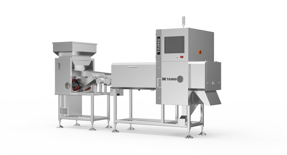 ? 精準探傷采用超能X射線+AI深度學習,可檢測金屬、玻璃、塑料、蟲尸、帶繩及內部空洞,安全標準規范優于國際標準。? 智能聯動與色選機無縫協同,實現“初篩+精檢”全流程自動化,綜合帶出比極低,原料損耗近乎為零。? 工業級設計食品級接觸材料,保證全流程安全,耐高溫、抗鹽蝕,適配油炸、腌制、烘干等嚴苛產線環境。
