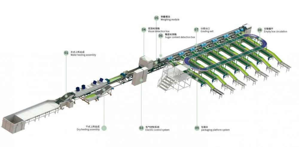 泰禾智能在水果分選領(lǐng)域深耕細(xì)作多年,所研發(fā)生產(chǎn)的智能水果分級(jí)系統(tǒng)能夠?qū)崿F(xiàn)水果內(nèi)外部品質(zhì)、重量、密度多重檢測(cè),適用于橙子、蘋(píng)果、獼猴桃、檸檬、梨等多種類球形水果的實(shí)時(shí)檢測(cè)與分級(jí),全面滿足果品行業(yè)生產(chǎn)企業(yè)的智能化、自動(dòng)化、信息化需求,致力于為本土果品企業(yè)賦能,助力本土優(yōu)質(zhì)果品價(jià)值升級(jí),從原產(chǎn)地走向全世界!