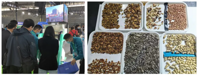 展會現場,泰禾智能AI分選設備進行了多種堅果炒貨食材分選演示,包括瓜子、花生果、花生米、杏仁、核桃、松子等。