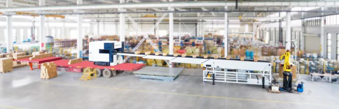 泰禾智能系統可對生產要素進行靈活配置和調整,提升產品搬運的速度,可高效、長期穩定運作,實現多批次、定制化產品裝車,完成獲取任務-拆垛-掃碼-裝車等工作流程。