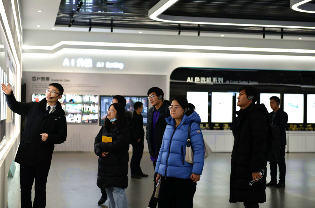媒體記者團(tuán)一行,參觀了泰禾智能文化展廳,觀看了大米色選機(jī)分選流程。聽取了泰禾智能 國內(nèi)外銷售情況、 核心競爭力、未來發(fā)展定位、核心六大產(chǎn)品、企業(yè)文化等匯報。并對泰禾智能堅(jiān)持創(chuàng)新、推動技術(shù)革新給予了高度肯定。