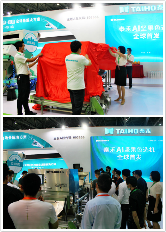 9月18日-20日,第十四屆堅果炒貨展,泰禾光電重磅發布2020新款AI堅果炒貨色選機,帶領大家一起感受AI分選的神奇之處。