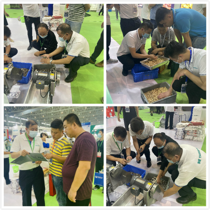 會上,泰禾光電為遠道而來的來賓們演示了AI堅果炒貨色選機分選流程,獲得了客戶的一致好評。