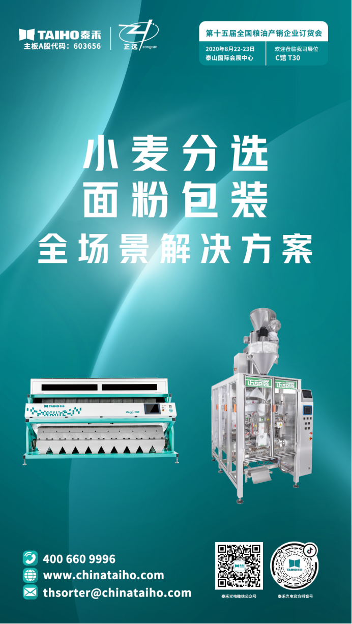 第十五屆全國糧油展銷企業訂貨會現場,泰禾光電全新的小麥分選-面粉包裝全場景解決方案亮相,該解決方案涵蓋了目前行業前沿的科創成果,是中國智造的又一創新體現。