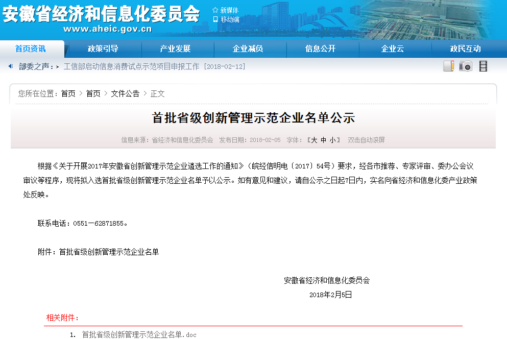 2018年2月5日,安徽省經(jīng)濟(jì)和信息化委員會(huì)公布了首批省級(jí)創(chuàng)新管理示范企業(yè)名單。泰禾光電成功入選首批省級(jí)創(chuàng)新管理示范企業(yè)名單,是行業(yè)內(nèi)唯一一家獲此殊榮的企業(yè)。