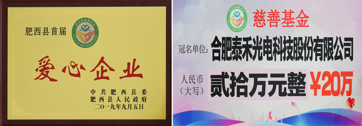 勇?lián)鐣?huì)責(zé)任 泰禾光電榮獲肥西縣首屆“愛心企業(yè)”光榮稱號(hào)