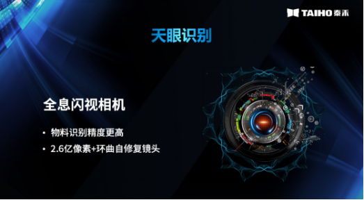 近乎極值的2.6億像素+環曲自修復鏡頭,50000次/秒,能識別上億種顏色,滿足不同種物料的識別。