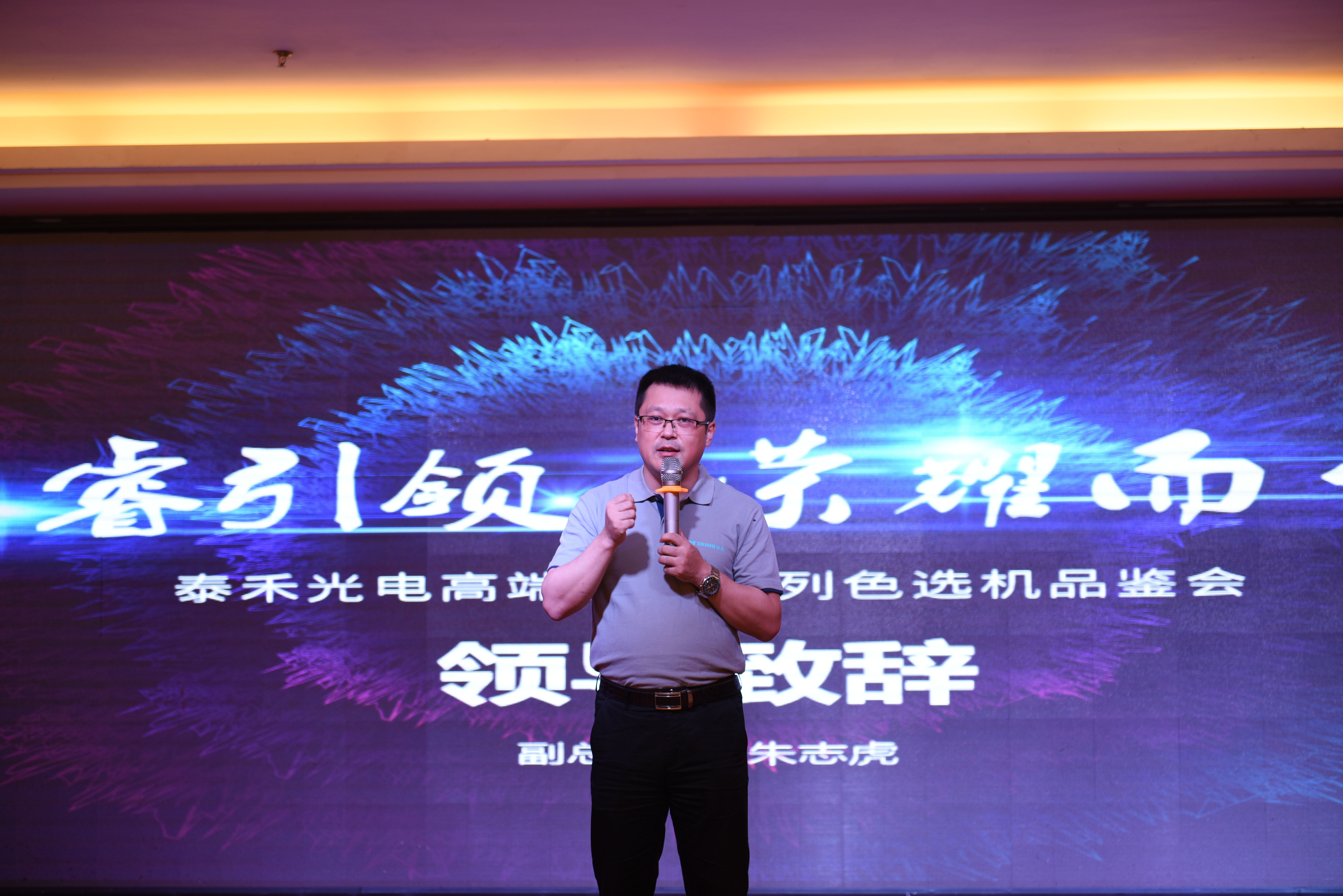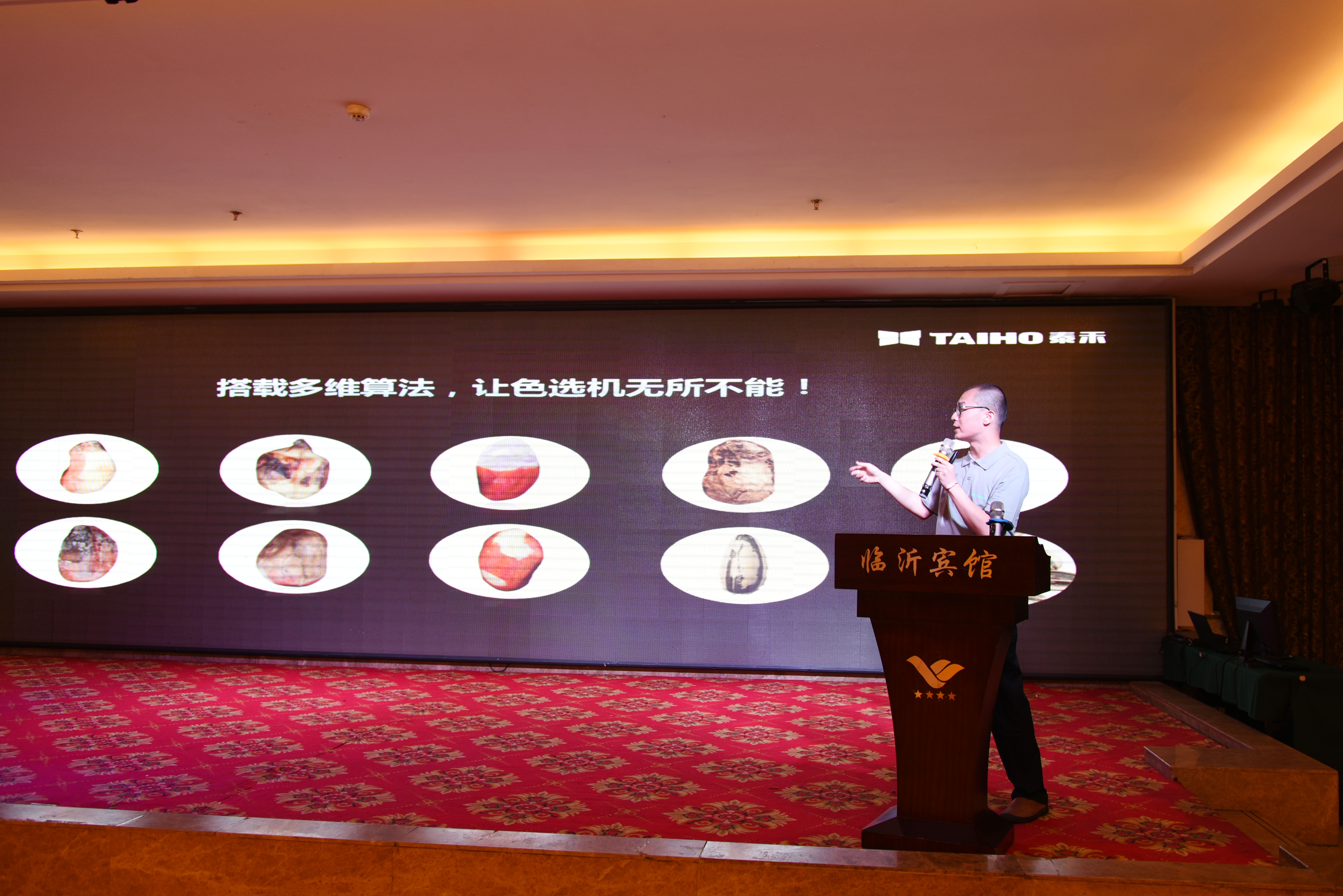 泰禾光電副總經理朱志虎向出席盛會的所有來賓表示了熱烈的歡迎并致辭。朱志虎先生現場就目前花生行業現狀進行了分析和泰禾光電如何協助企業實現收益最大化展開了分享。朱志虎先生指出,帶著聯接使命的智能色選機可以很好的聯接人與商業,帶領我們步入智聯萬物 共享未來的智能時代。