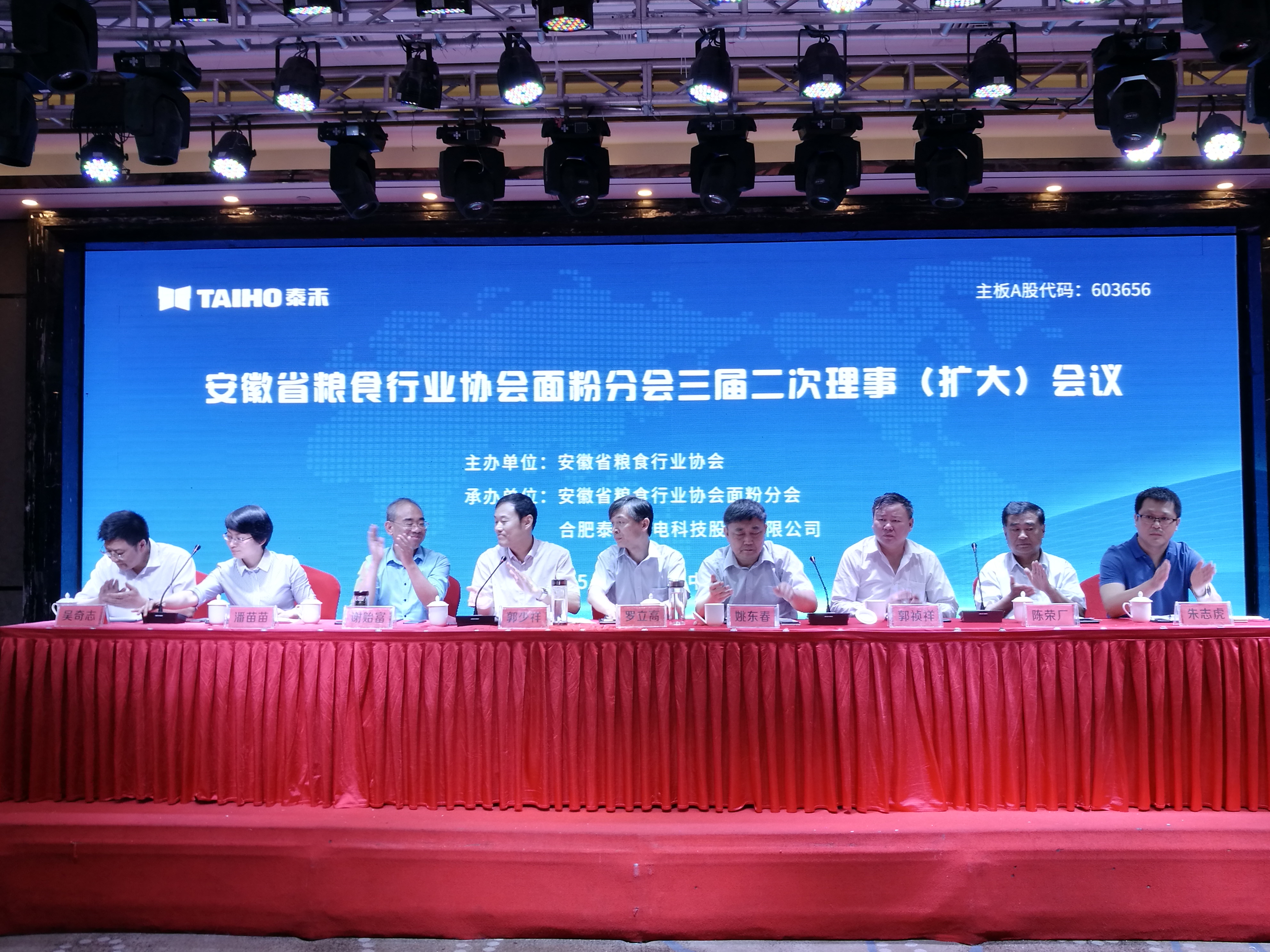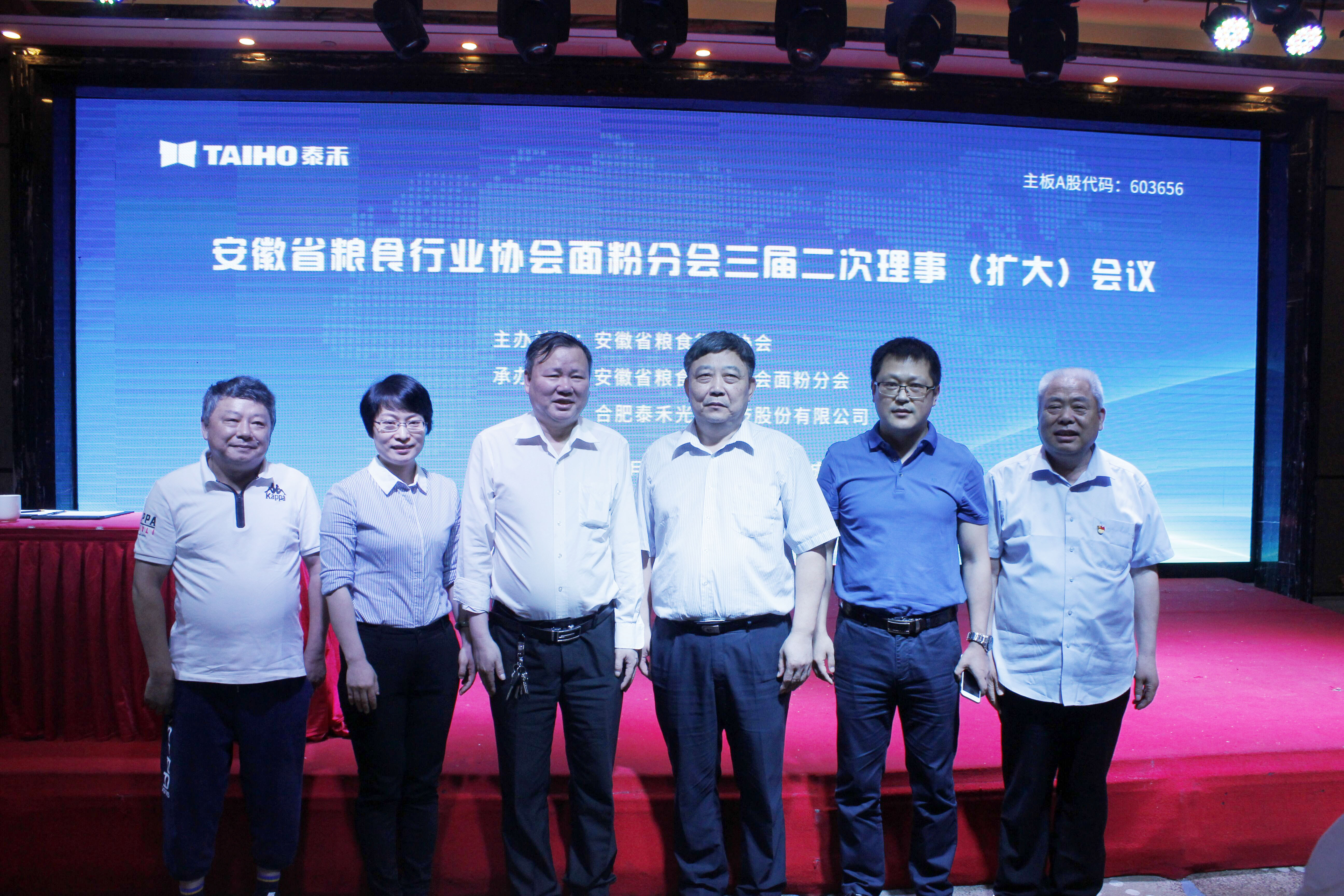 2018年5月31日,安徽省糧食行業協會面粉分會三屆二次理事(擴大)會議在蒙城縣莊子國際大酒店盛大開幕,安徽省蒙城縣縣委常委、副縣長羅立高,安徽省糧食局行業管理處處長姚東春,安徽省糧食行業協會常務副會長郭少祥,安徽省糧食行業協會面粉分會理事長潘苗苗,河南工業大學教授郭禎祥,合肥泰禾光電科技股份有限公司營銷總監朱志虎等相關領導及近200名業內同仁出席了會議。