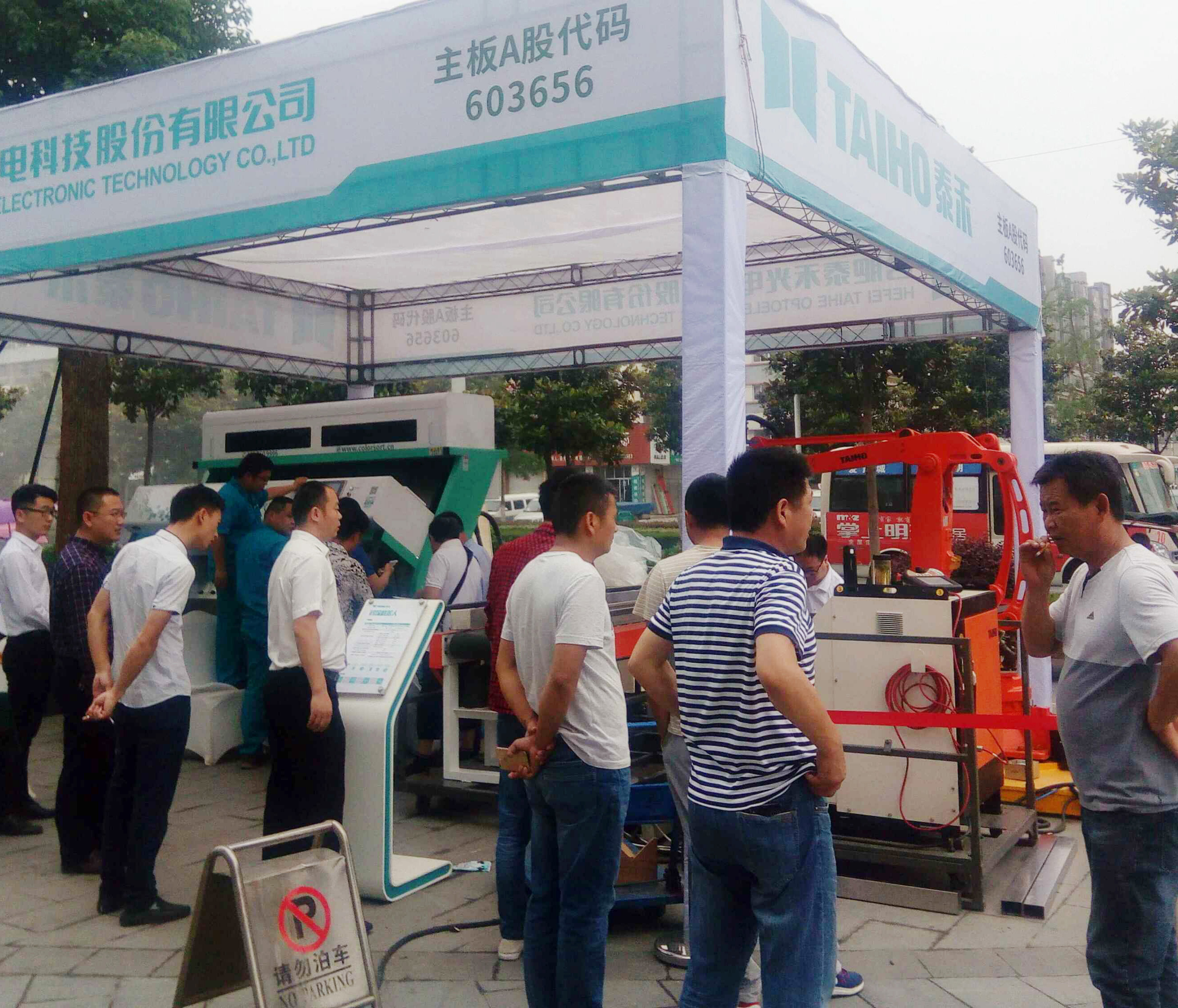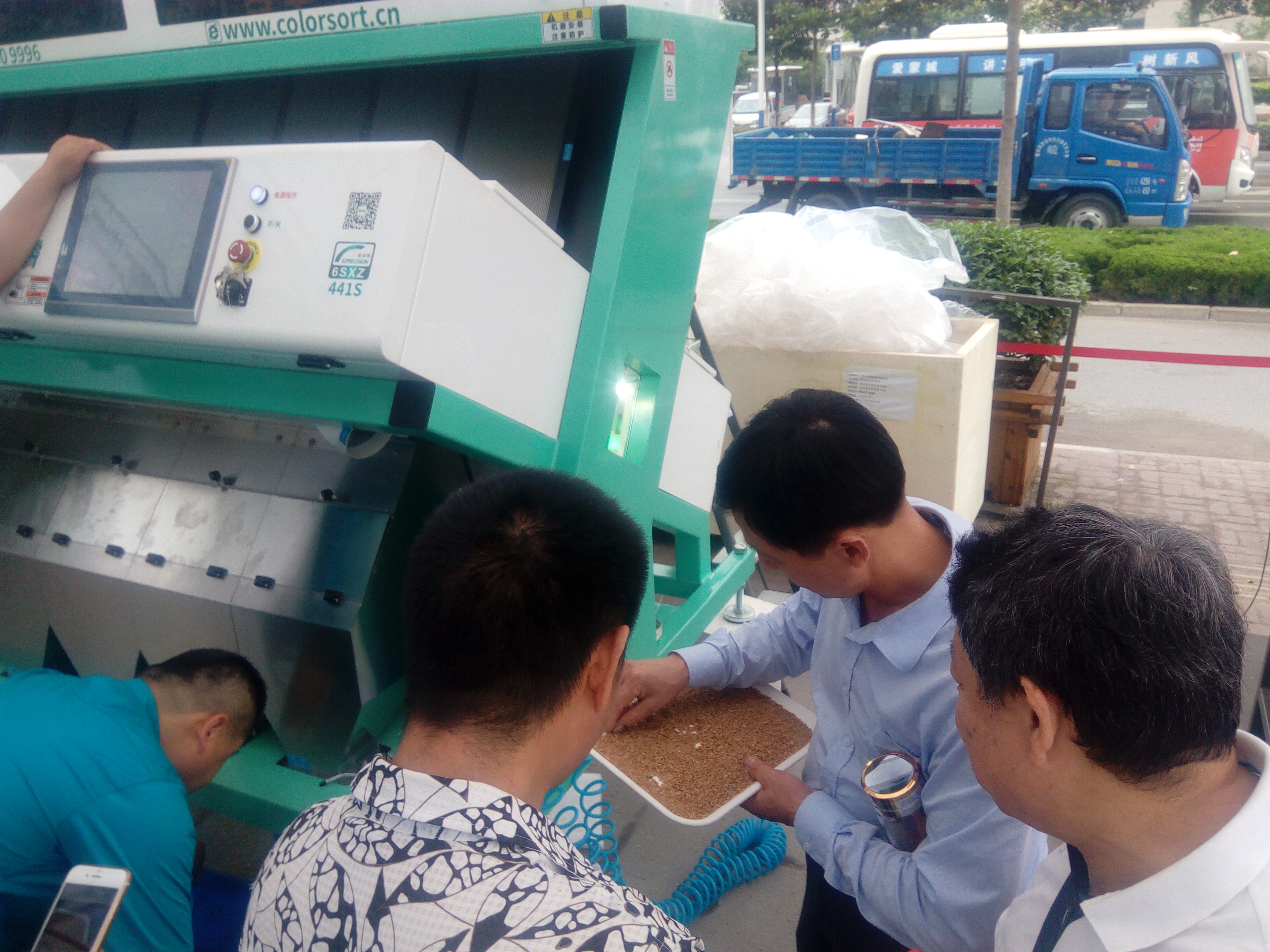試料現場火爆,氣氛熱烈,近百家企業領導人到現場觀摩并詳細的了解了泰禾色選機色選效果和工業機器人的運作,紛紛點贊。