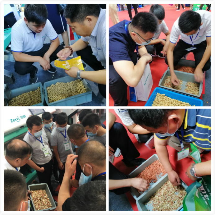 會上泰禾光電,匠心獨運的設計、精準的花生分選技術、一體化的包裝碼垛解決方案,吸引眾多客戶駐足觀看和咨詢。