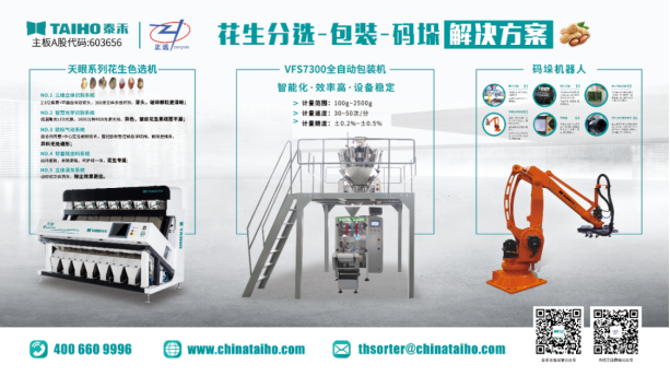 會上泰禾光電花生色選-包裝-碼垛解決方案一經亮相,就吸引了眾多關注,熱勢不可擋。