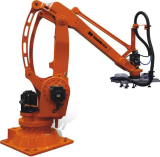 作為自動化程度較高的機械設備,動作靈活精準、快速高效、穩定性高,能夠在生產線末端取代人工實現工件的自動碼垛。機器人機械本體機體力學結構更加合理、整體密封性更好;采用自研硬件控制平臺,控制器的體積小,設備功耗低,系統實時性強;示教器穩定性和可操作性優異,在惡劣工廠環境中依舊能夠長時間、無故障應用。