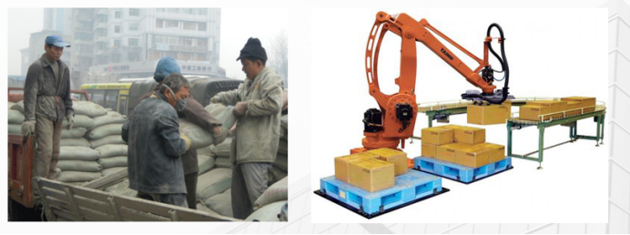 傳統(tǒng)的人工搬運(yùn)碼垛,員工勞動(dòng)強(qiáng)度大,生產(chǎn)效率低,且操作難,培訓(xùn)難,而智能碼垛機(jī)器人最大的一個(gè)優(yōu)勢就是解放勞動(dòng)力,一臺碼垛機(jī)至少可以代替三四個(gè)工人的工作量,提高了勞動(dòng)效率。