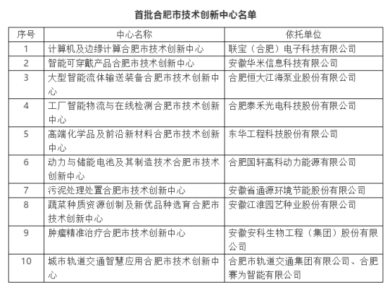 首批市技術(shù)創(chuàng)新中心申報達56家,根據(jù)科技型企業(yè)的綜合實力、創(chuàng)新能力等綜合評價,擇優(yōu)選擇在本行業(yè)位居前列的重點企業(yè),最終選定首批10家企業(yè)作為合肥市技術(shù)創(chuàng)新中心,將著力打造成為省級、國家科技創(chuàng)新基地的“預(yù)備隊”和全市各類創(chuàng)新基地的“先鋒隊”。