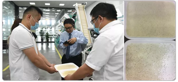 在設(shè)備演示廳,工作人員現(xiàn)場演示了智能分選流程及效果。泰禾智能在農(nóng)副食品分選領(lǐng)域深耕多年,積累了多項(xiàng)關(guān)鍵技術(shù)與科技成果,以核心科技守衛(wèi)人民群眾的糧食健康與食品安全。調(diào)研組對(duì)智能分選項(xiàng)目在國家糧食安全和農(nóng)業(yè)產(chǎn)業(yè)化的應(yīng)用價(jià)值給予高度認(rèn)可。
